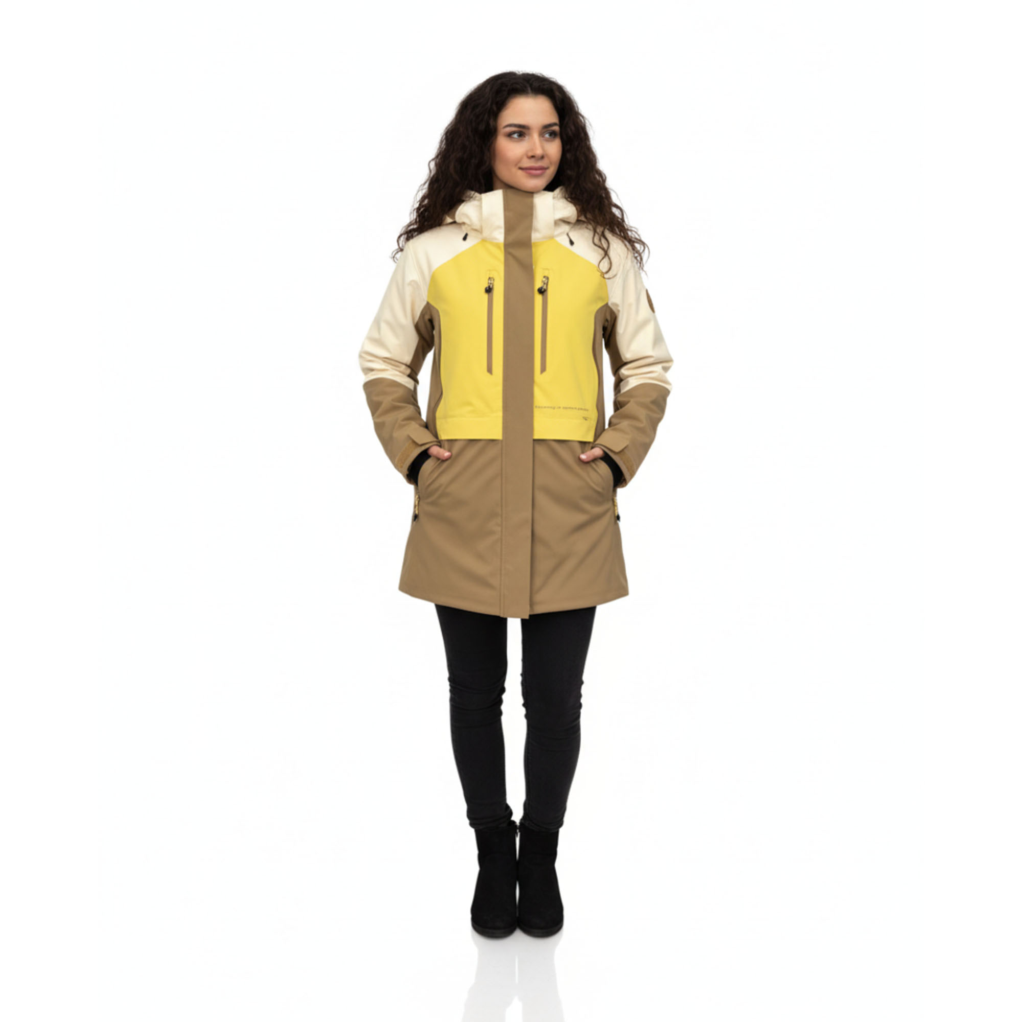 - Высокий воротник с капюшоном;